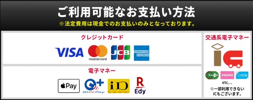 アップルペイ・クイックペイ・iD・交通系IC・楽天Edyもお使いいただけます!